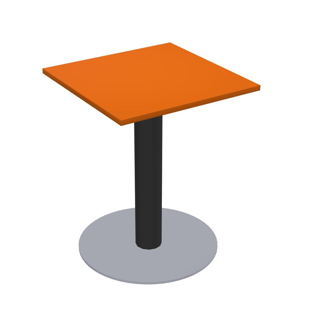 Table Modulaire Pour Bureau, Restaurant, Cafétéria, Salle De Pause Et Service De Restauration, Avec Plateau Orange, Pieds Ronds Noirs Et Base Ronde Grise