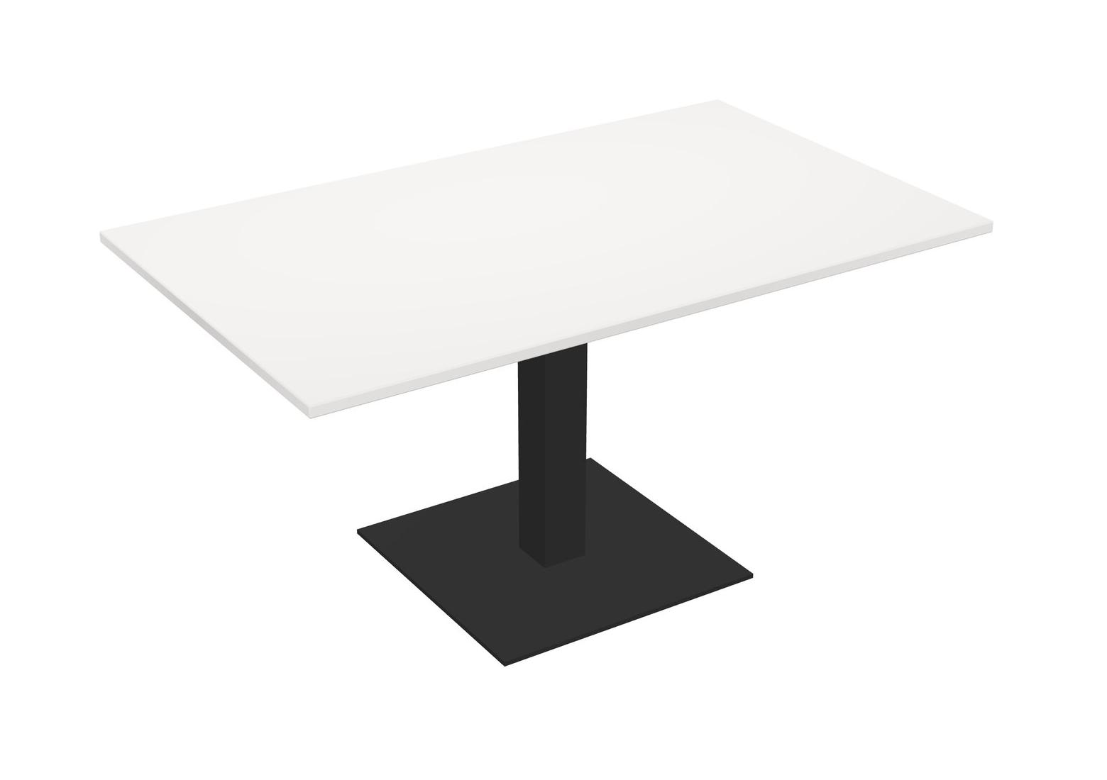 Table Modulaire Pour Bureau, Restaurant, Cafétéria, Salle De Pause Et Service De Restauration, Avec Plateau Blanc, Pieds Carrés Noirs Et Plaque De Base Carrée Noire