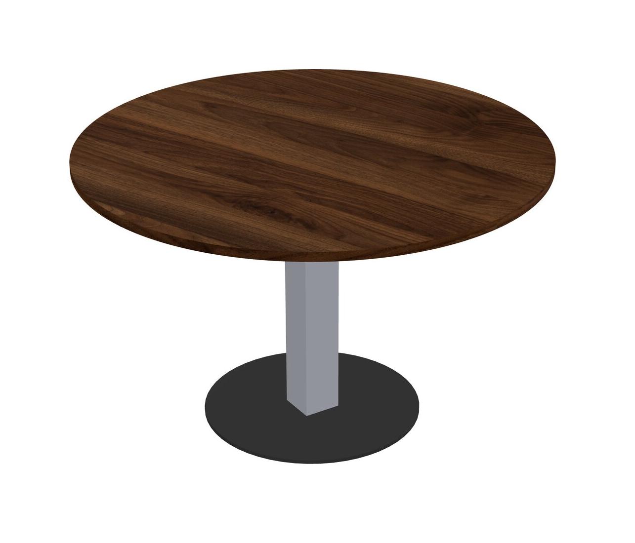 Table Modulaire Pour Bureau, Restaurant, Cafétéria, Salle De Pause Et Service De Restauration, Avec Plateau En Noyer De Colombie, Pieds Carrés Gris Et Base Ronde Noire