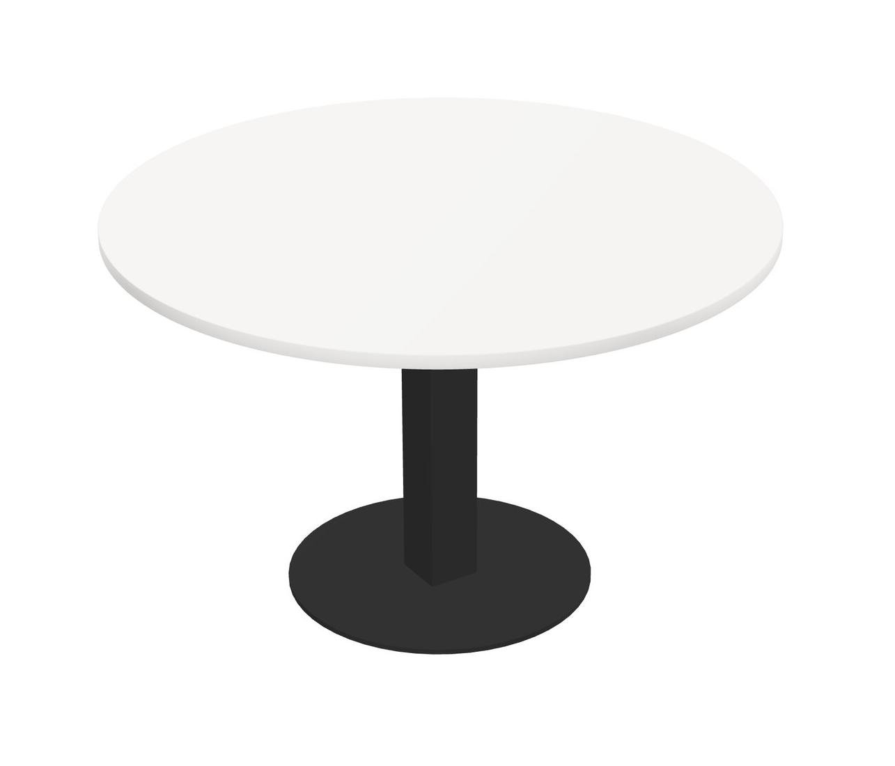 Table Modulaire Pour Bureau, Restaurant, Cafétéria, Salle De Pause Et Service De Restauration, Avec Plateau Blanc, Pieds Carrés Noirs Et Base Ronde Noire