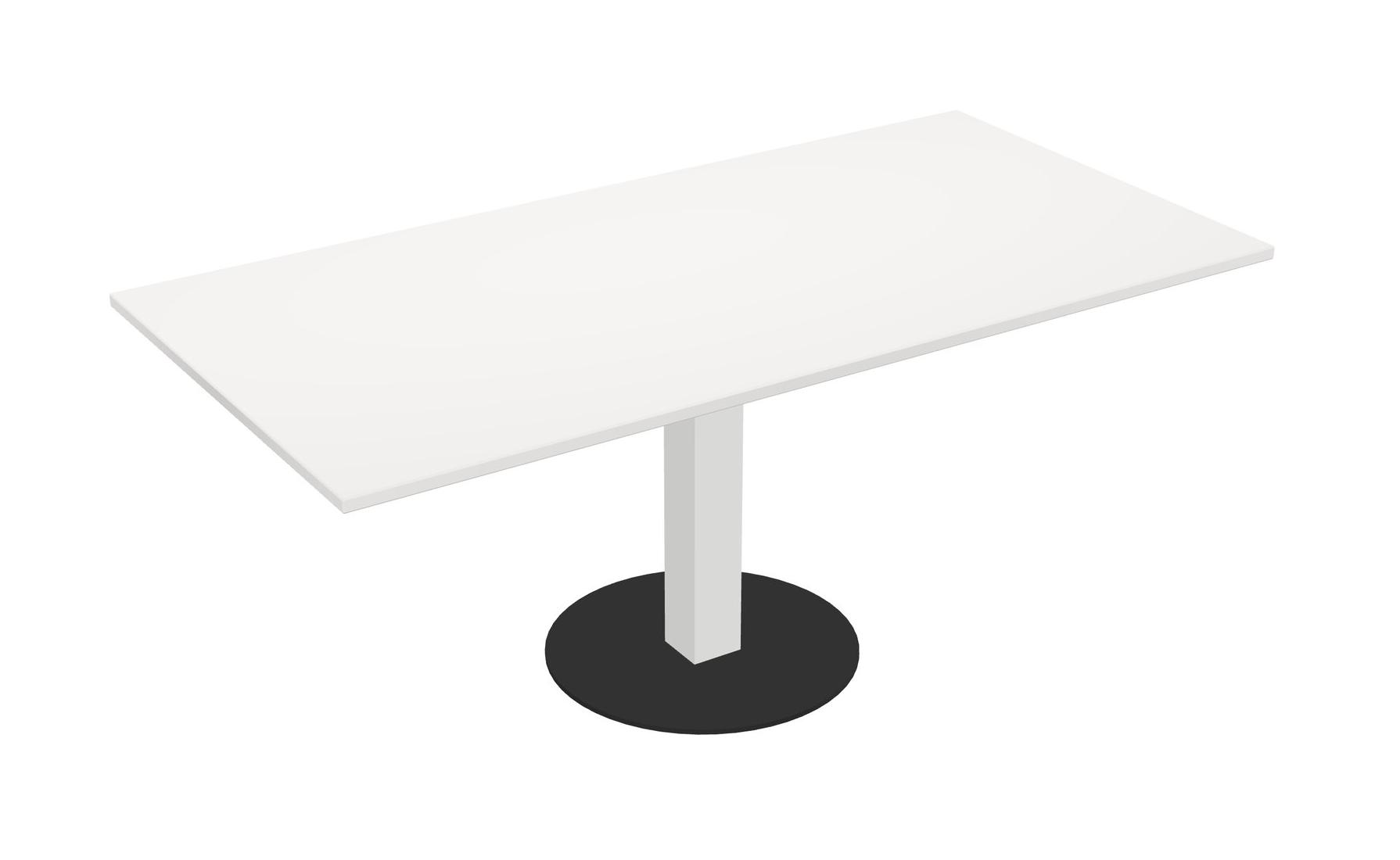 Table Modulaire Pour Bureau, Restaurant, Cafétéria, Salle De Pause Et Service De Restauration, Avec Plateau Blanc, Pieds Carrés Blancs Et Base Ronde Noire