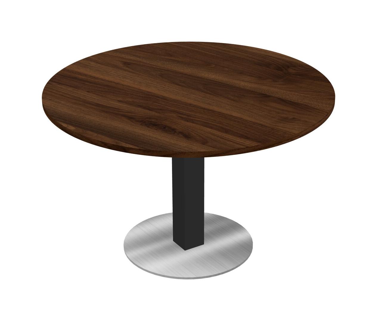Table Modulaire Pour Bureau, Restaurant, Cafétéria, Salle De Pause Et Service De Restauration, Avec Plateau En Noyer De Colombie, Pieds Carrés Noirs Et Base Ronde Chromée