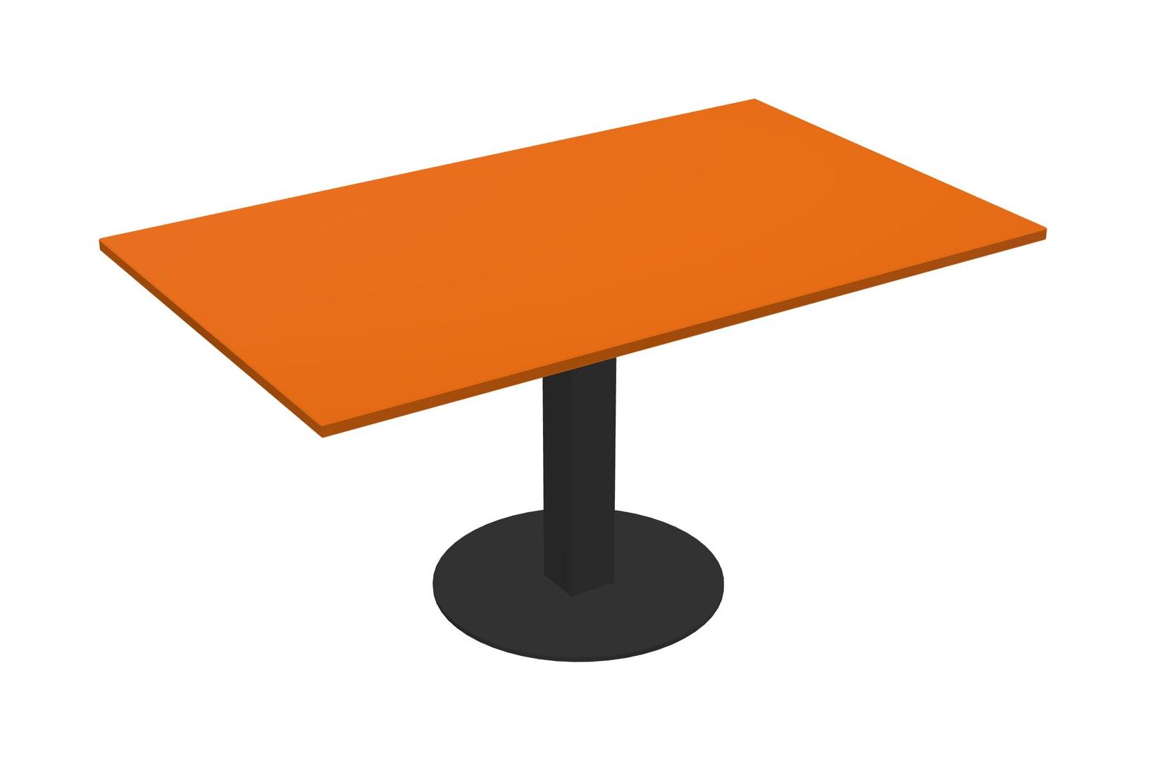 Table Modulaire Pour Bureau, Restaurant, Cafétéria, Salle De Pause Et Service De Restauration, Avec Plateau Orange, Pieds Carrés Noirs Et Base Ronde Noire