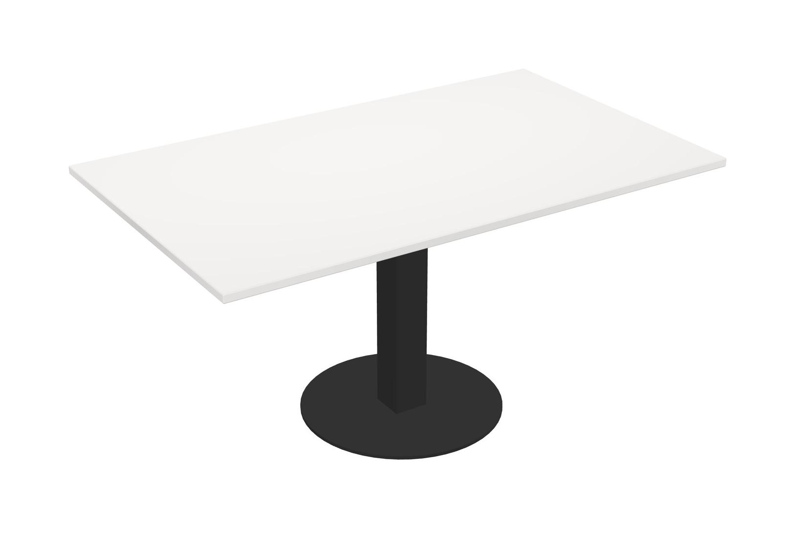 Table Modulaire Pour Bureau, Restaurant, Cafétéria, Salle De Pause Et Service De Restauration, Avec Plateau Blanc, Pieds Carrés Noirs Et Base Ronde Noire