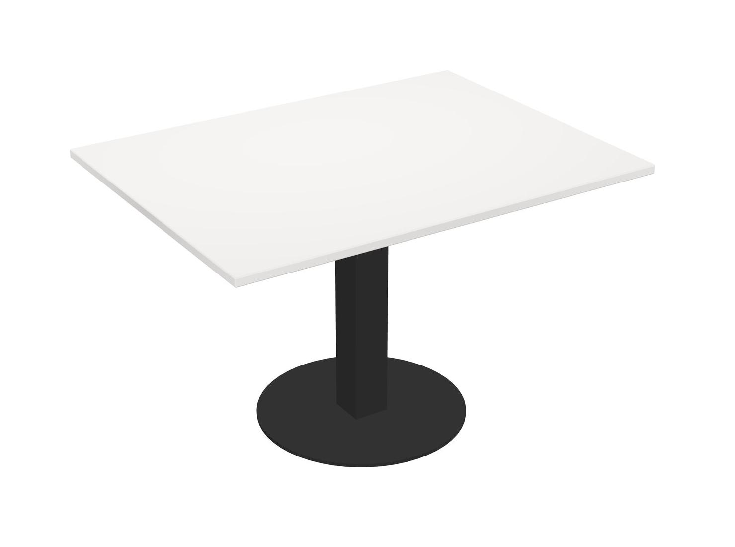 Table Modulaire Pour Bureau, Restaurant, Cafétéria, Salle De Pause Et Service De Restauration, Avec Plateau Blanc, Pieds Carrés Noirs Et Base Ronde Noire