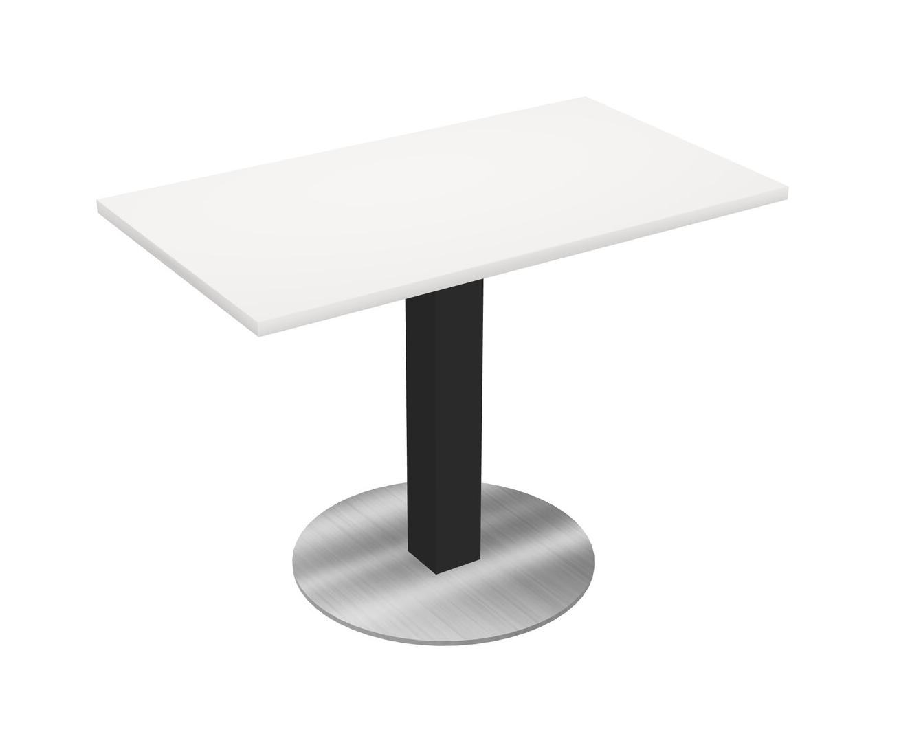 Table Modulaire Pour Bureau, Restaurant, Cafétéria, Salle De Pause Et Service De Restauration, Avec Plateau Blanc, Pieds Carrés Noirs Et Base Ronde Chromée