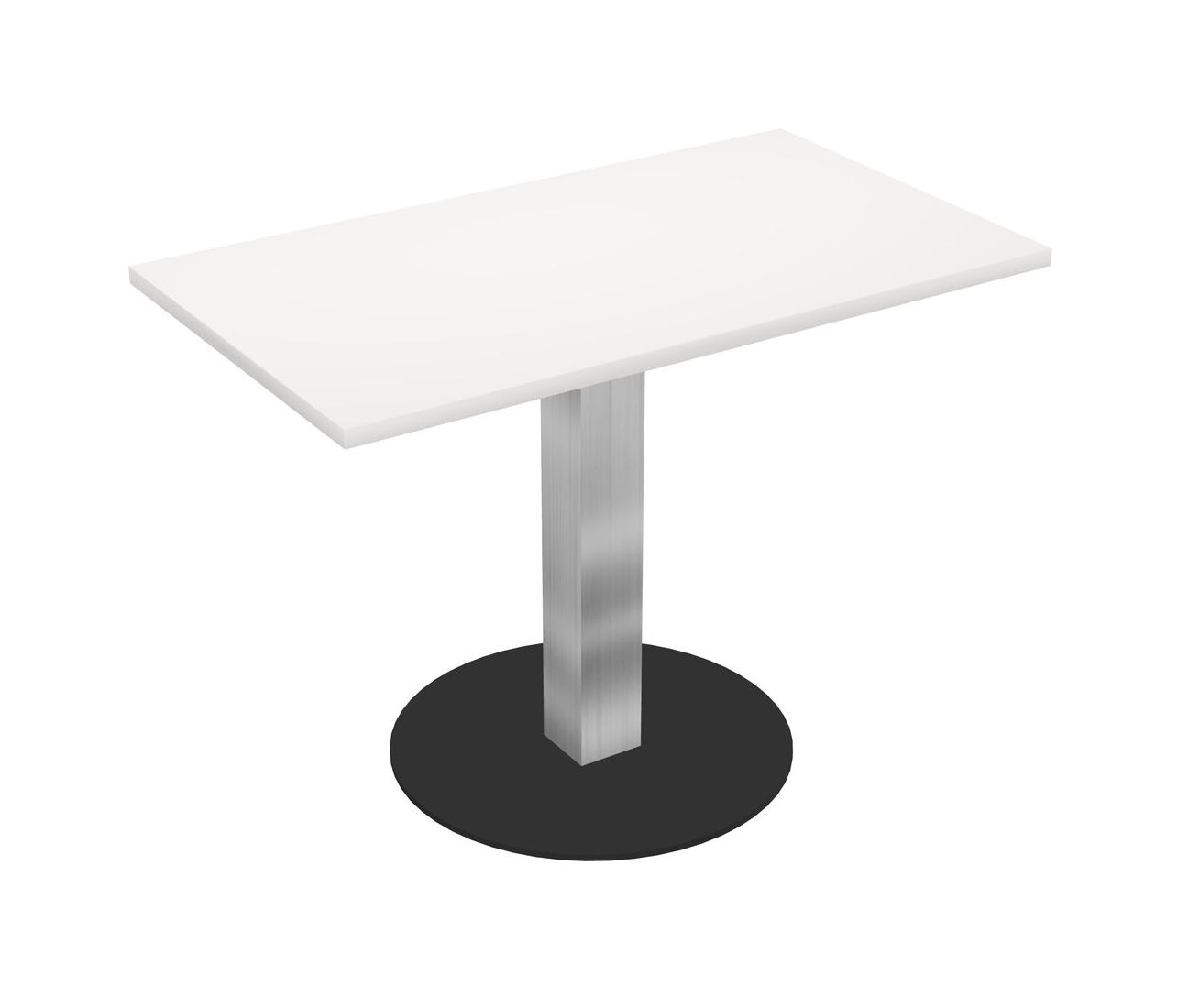 Table Modulaire Pour Bureau, Restaurant, Cafétéria, Salle De Pause Et Service De Restauration, Avec Plateau Blanc, Pieds Carrés Chromés Et Base Ronde Noire