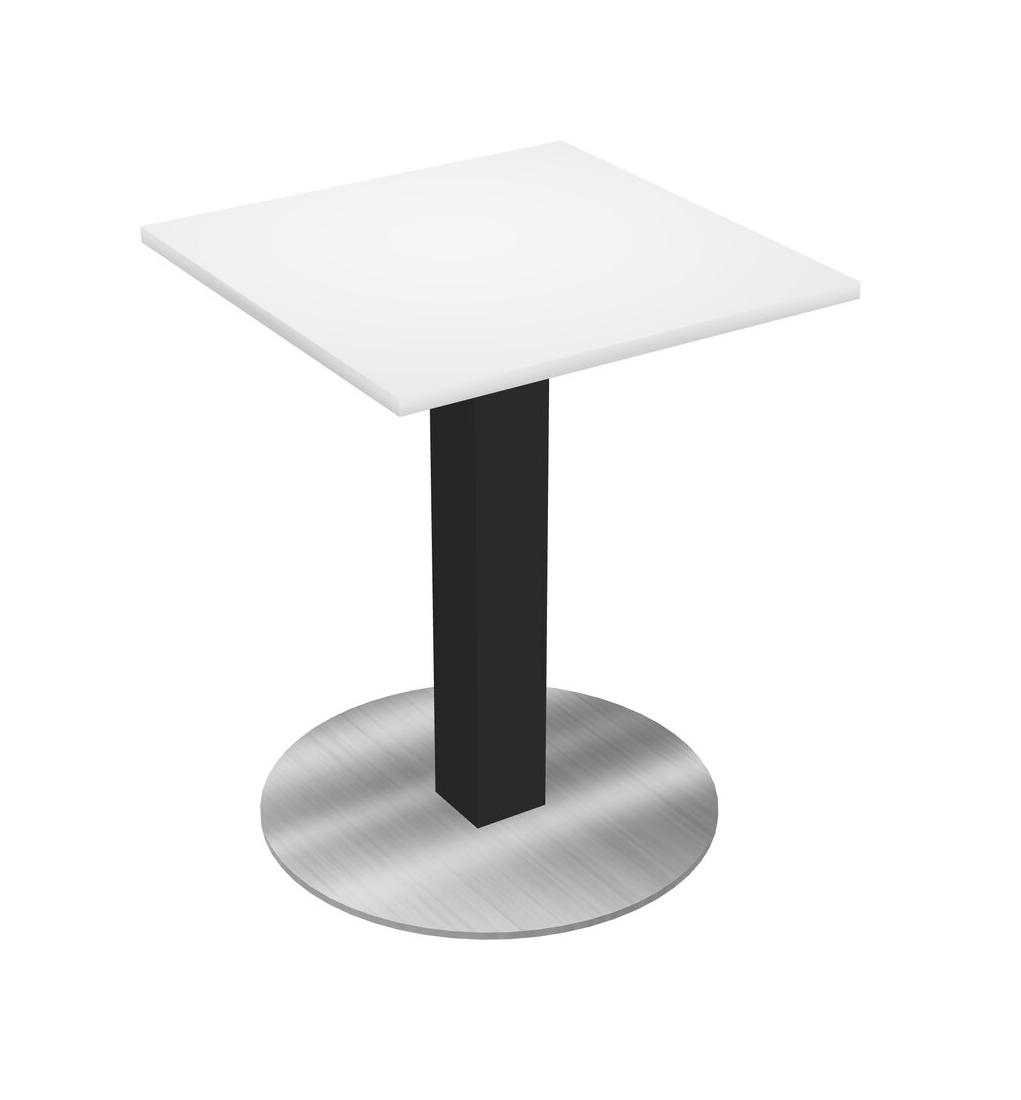Table Modulaire Pour Bureau, Restaurant, Cafétéria, Salle De Pause Et Service De Restauration, Avec Plateau Blanc, Pieds Carrés Noirs Et Base Ronde Chromée