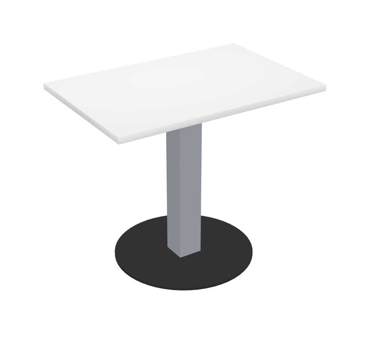 Table Modulaire Pour Bureau, Restaurant, Cafétéria, Salle De Pause Et Service De Restauration, Avec Plateau Blanc, Pieds Carrés Gris Et Base Ronde Noire