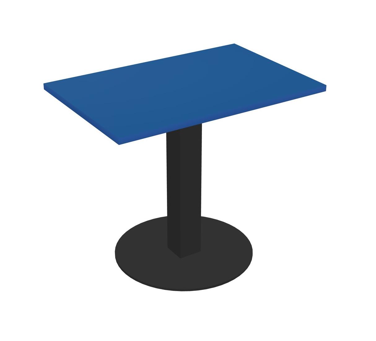 Table Modulaire Pour Bureau, Restaurant, Cafétéria, Salle De Pause Et Service De Restauration, Avec Plateau Bleu Prismatique, Pieds Carrés Noirs Et Base Ronde Noire