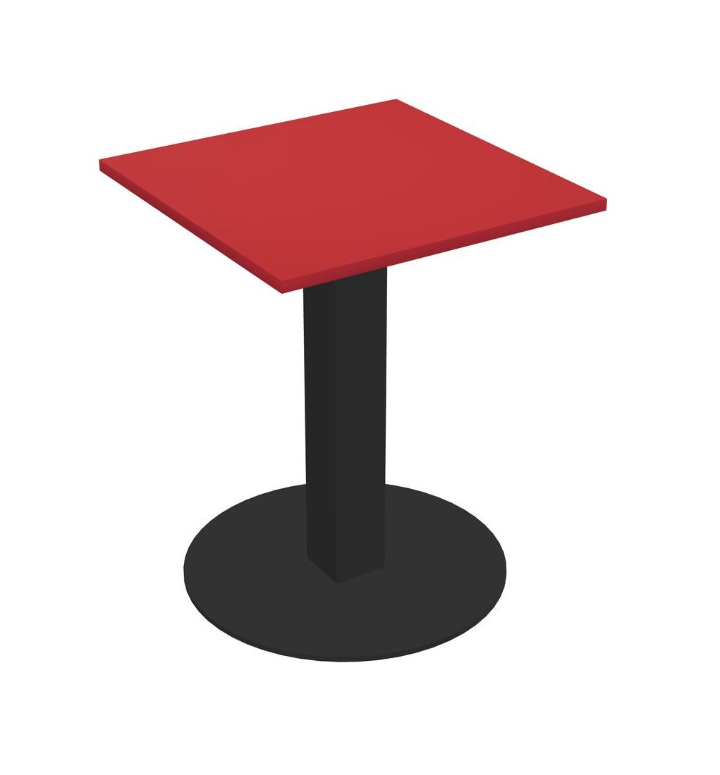 Table Modulaire Pour Bureau, Restaurant, Cafétéria, Salle De Pause Et Service De Restauration, Avec Plateau Rouge Prismatique, Pieds Carrés Noirs Et Base Ronde Noire