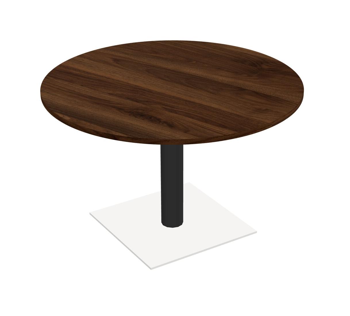 Table Modulaire Pour Bureau, Restaurant, Cafétéria, Salle De Pause Et Service De Restauration, Avec Plateau En Noyer De Colombie, Pieds Ronds Noirs Et Base Carrée Blanche