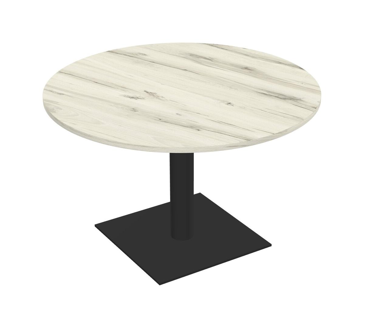 Table Modulaire Pour Bureau, Restaurant, Cafétéria, Salle De Pause Et Service De Restauration, Avec Plateau En Bois Heinne Holz, Pieds Ronds Noirs Et Base Carrée Noire