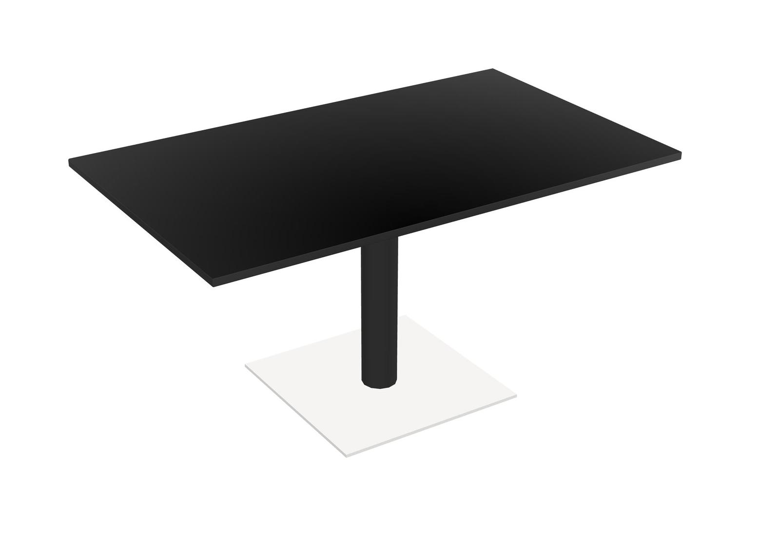 Table Modulaire Pour Bureau, Restaurant, Cafétéria, Salle De Pause Et Service De Restauration, Avec Plateau Noir, Pieds Ronds Noirs Et Base Carrée Blanche