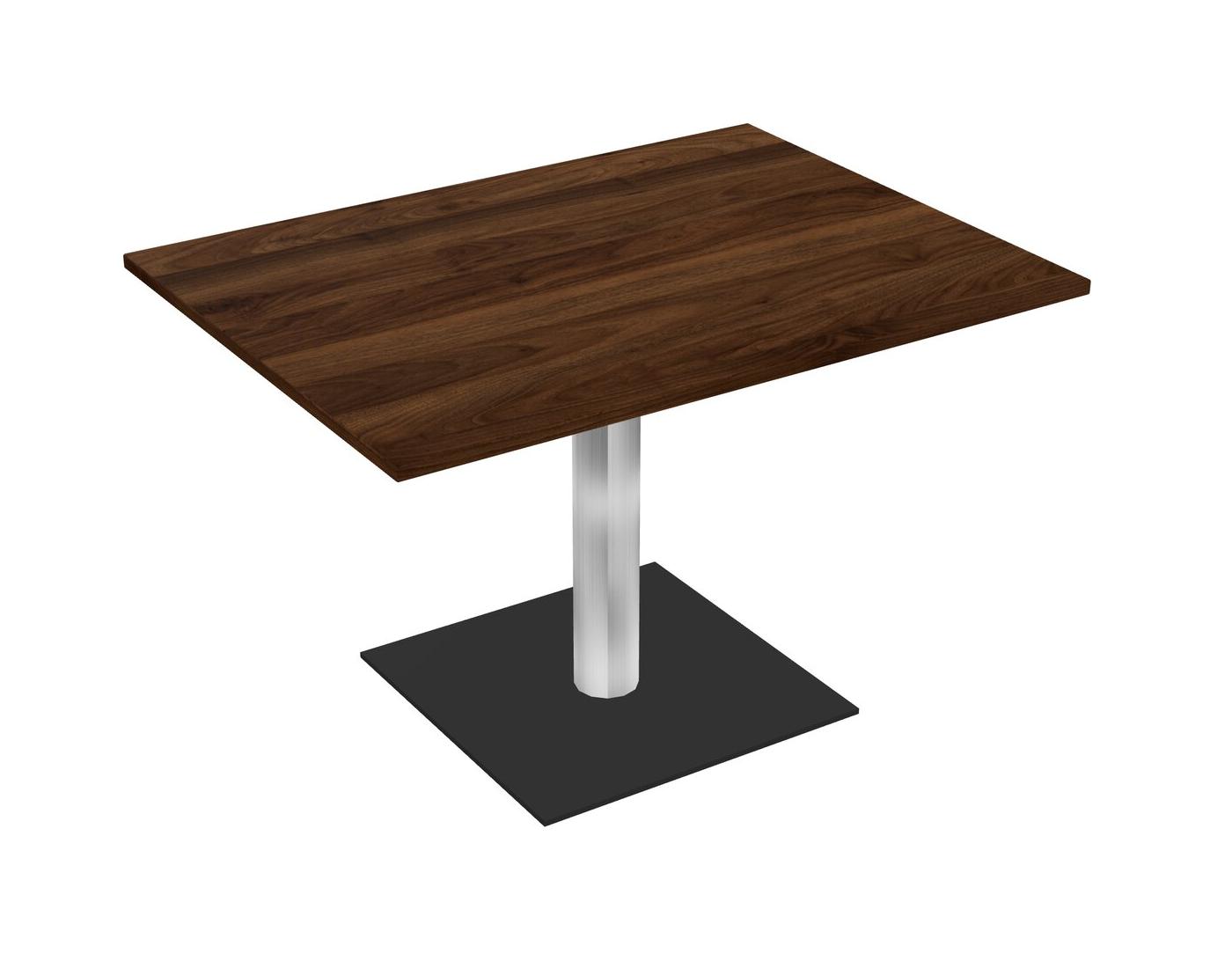 Table Modulaire Pour Bureau, Restaurant, Cafétéria, Salle De Pause Et Service De Restauration, Avec Plateau En Noyer De Colombie, Pieds Ronds Chromés Et Base Carrée Noire