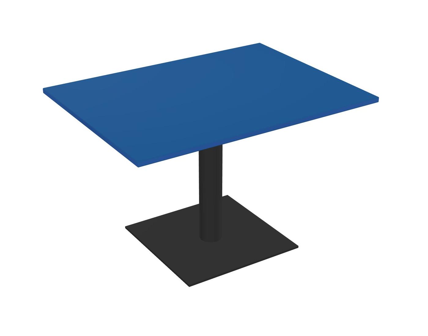 Table Modulaire Pour Bureau, Restaurant, Cafétéria, Salle De Pause Et Service De Restauration, Avec Plateau Bleu Prismatique, Pieds Ronds Noirs Et Base Carrée Noire