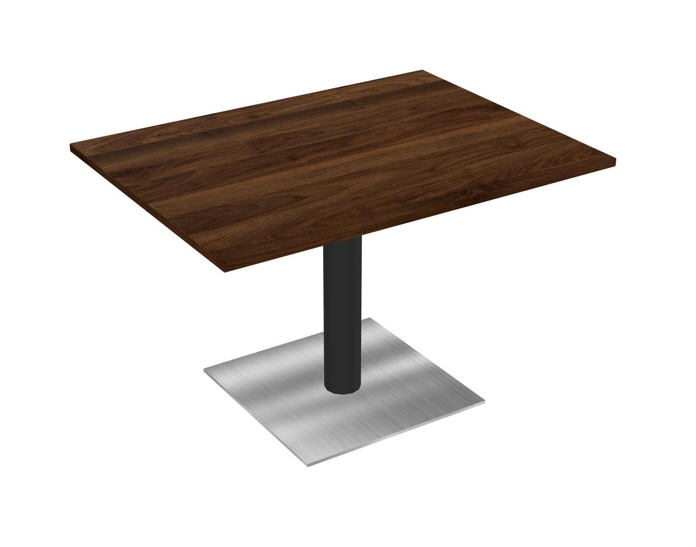 Table Modulaire Pour Bureau, Restaurant, Cafétéria, Salle De Pause Et Service De Restauration, Avec Plateau En Noyer De Colombie, Pieds Ronds Noirs Et Base Carrée Chromée