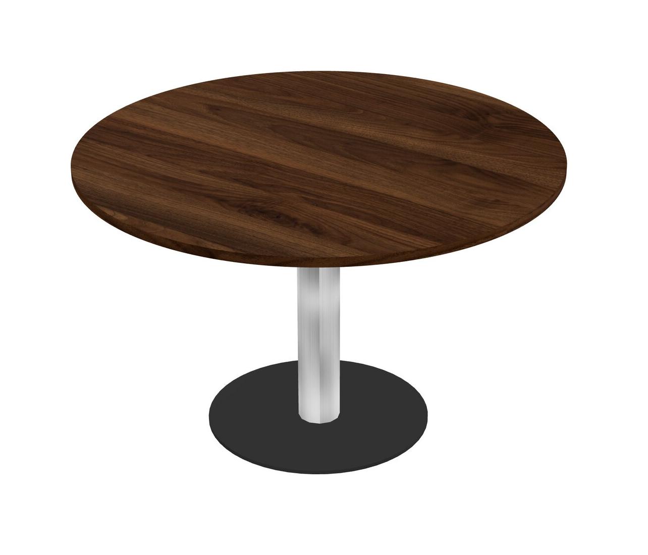Table Modulaire Pour Bureau, Restaurant, Cafétéria, Salle De Pause Et Service De Restauration, Avec Plateau En Noyer De Colombie, Pieds Ronds Chromés Et Base Ronde Noire