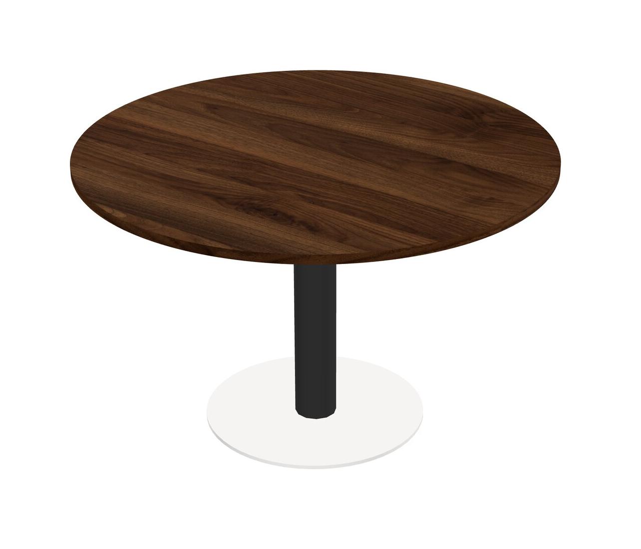 Table Modulaire Pour Bureau, Restaurant, Cafétéria, Salle De Pause Et Service De Restauration, Avec Plateau En Noyer De Colombie, Pieds Ronds Noirs Et Base Ronde Blanche