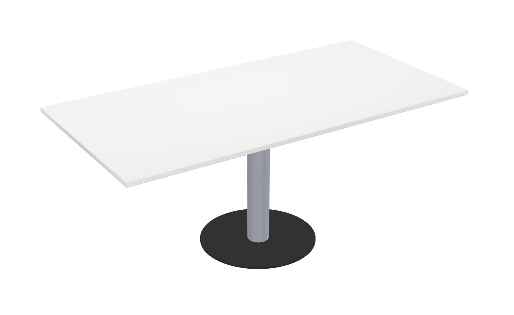 Table Modulaire Pour Bureau, Restaurant, Cafétéria, Salle De Pause Et Service De Restauration, Avec Plateau Blanc, Pieds Ronds Gris Et Base Ronde Noire