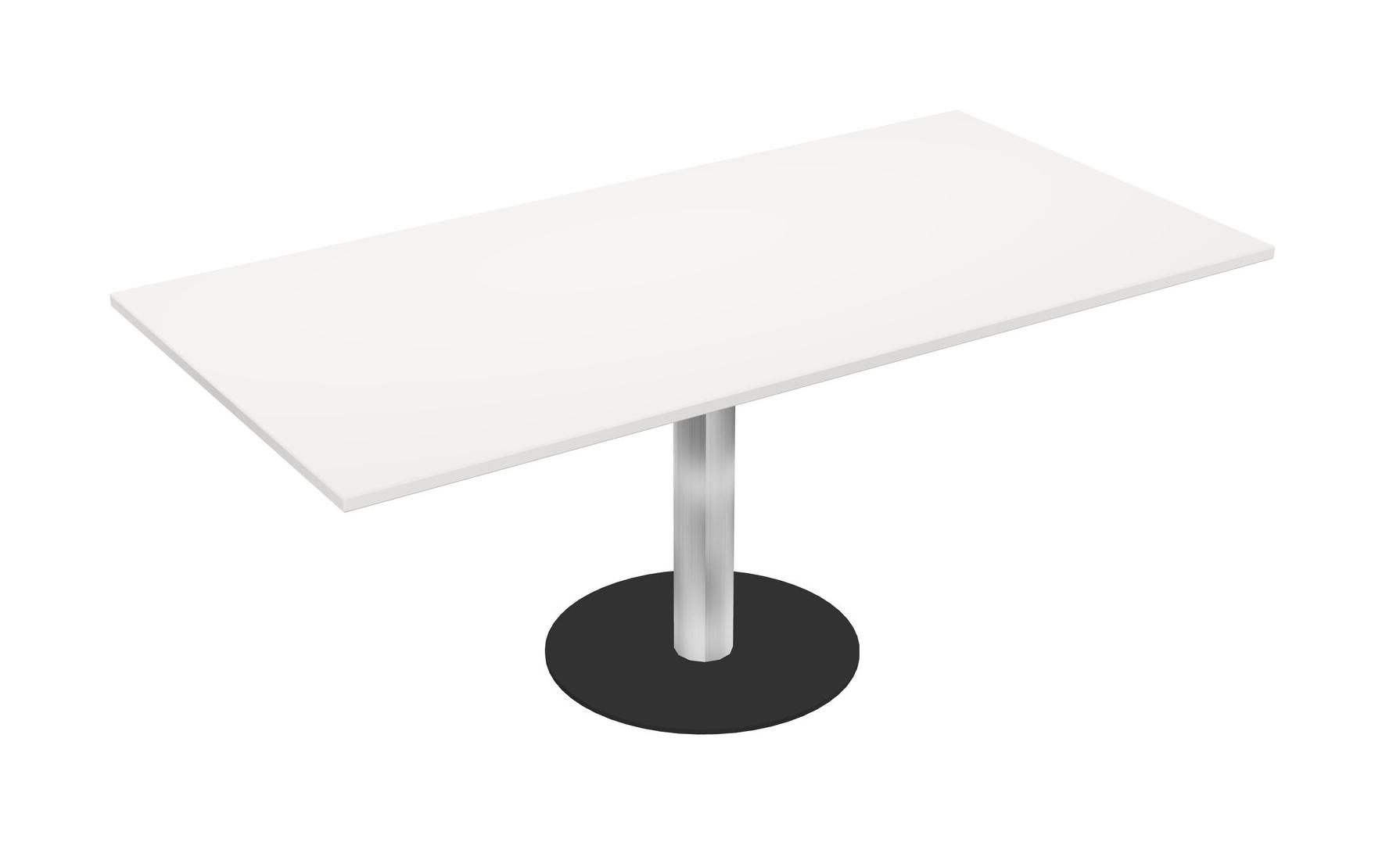 Table Modulaire Pour Bureau, Restaurant, Cafétéria, Salle De Pause Et Service De Restauration, Avec Plateau Blanc, Pieds Ronds Chromés Et Base Ronde Noire