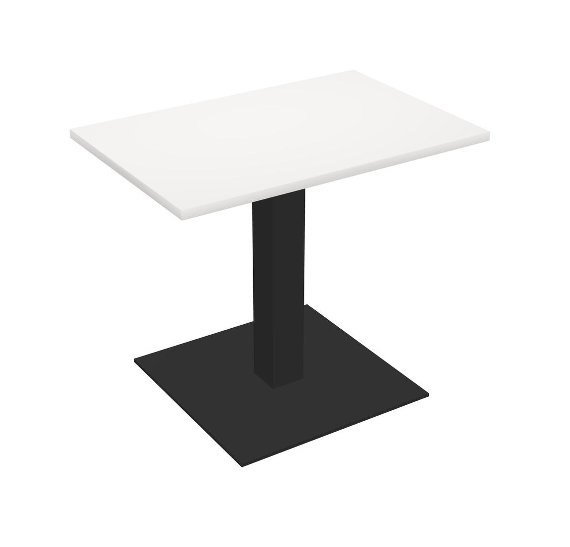 Table Modulaire Pour Bureau, Restaurant, Cafétéria, Salle De Pause Et Service De Restauration, Avec Plateau Blanc, Pieds Carrés Noirs Et Plaque De Base Carrée Noire