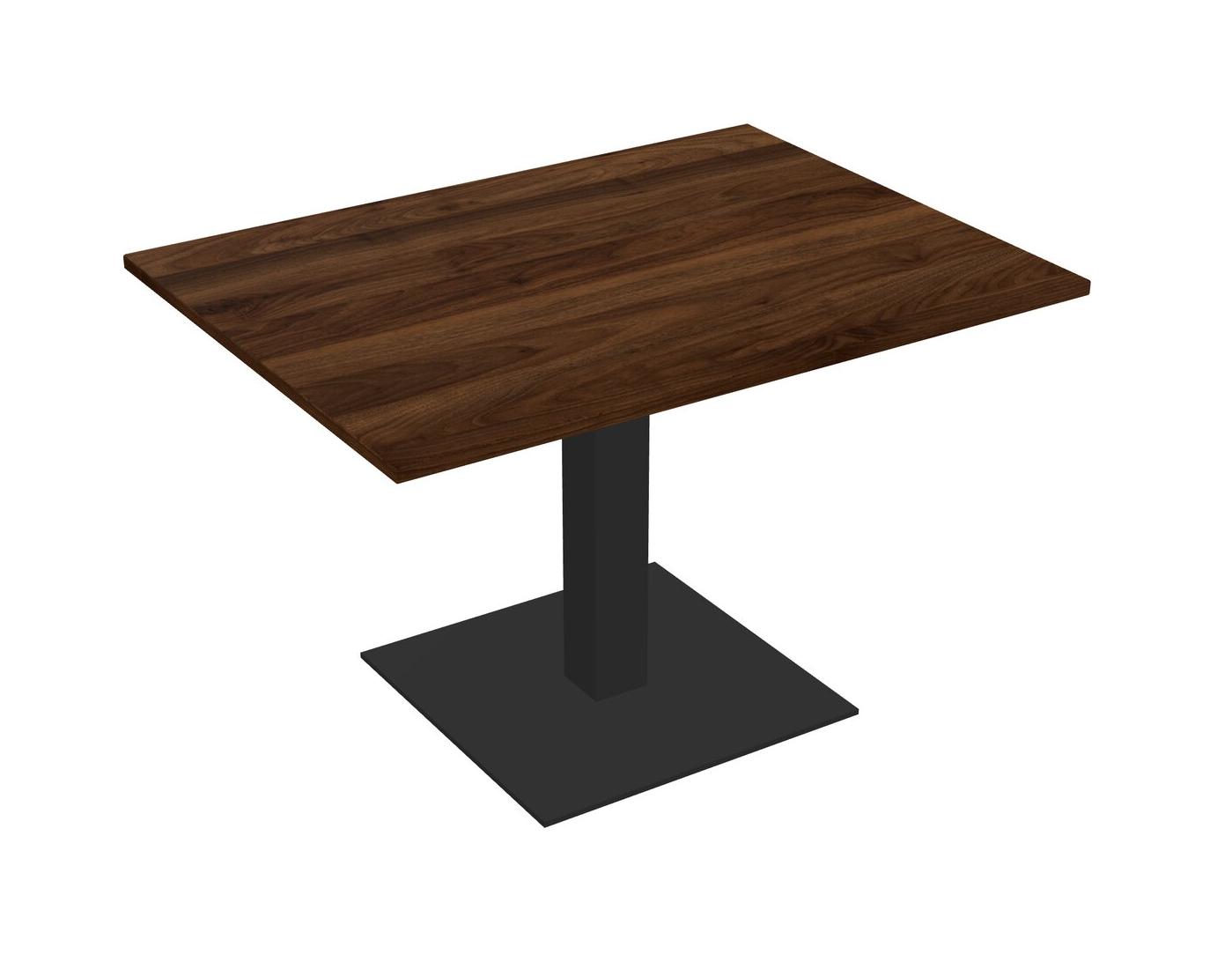 Table Modulaire Pour Bureau, Restaurant, Cafétéria, Salle De Pause Et Service De Restauration, Avec Plateau En Noyer De Colombie, Pieds Carrés Noirs Et Plaque De Base Carrée Noire