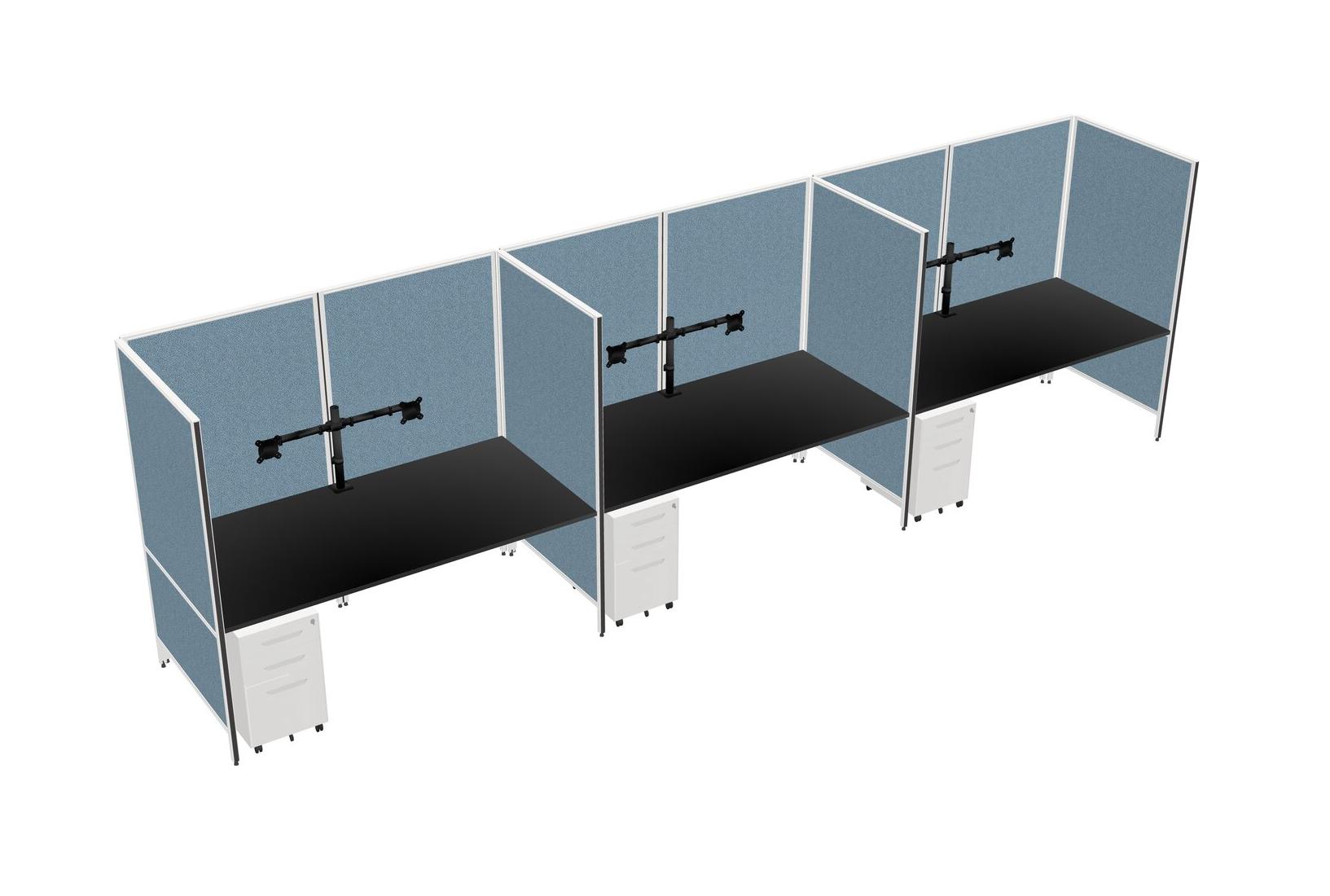 Système De Panneaux Flexibles Noirs Pour 3 Tiroirs Mobiles En Métal + Bras Pour écran (double Bras)