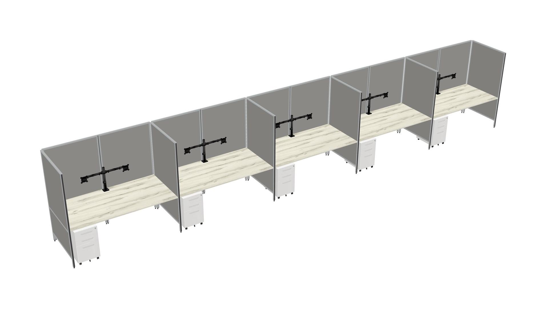 Système De Panneaux Flexibles Heinne Holz Pour 5 Tiroirs Mobiles Métalliques + Bras Pour écran (double Bras)