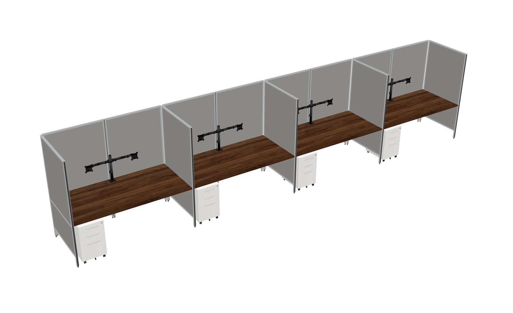 Système De Panneaux Flexibles En Noyer Columbia Pour 4 Tiroirs Mobiles En Métal + Bras Pour écran (double Bras)