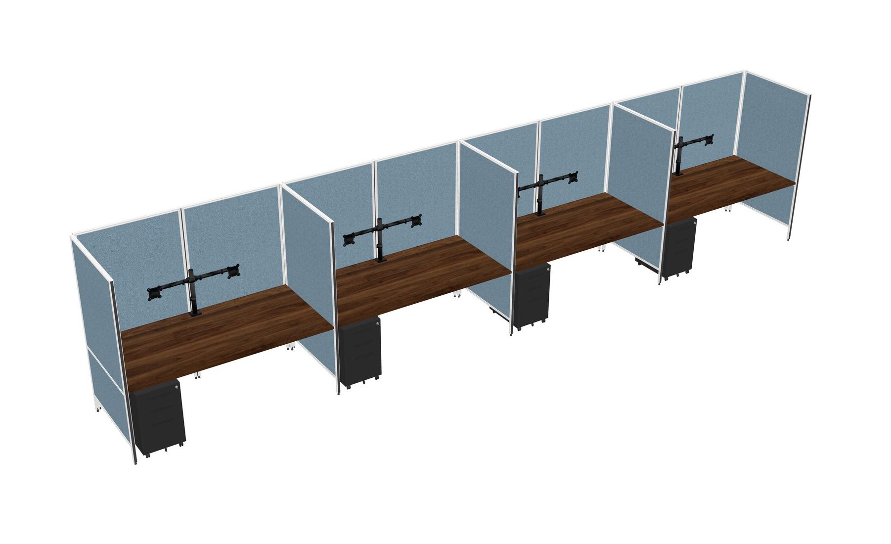 Système De Panneaux Flexibles En Noyer Columbia Pour 4 Tiroirs Mobiles En Métal + Bras Pour écran (double Bras)