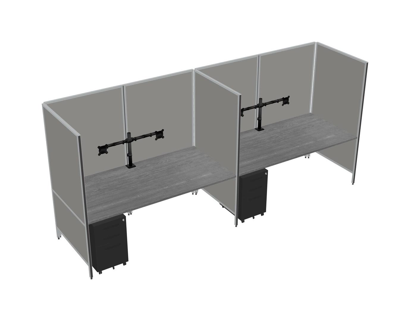 Système De Panneaux Flexibles Gris Pour 2 Tiroirs Mobiles En Métal + Bras Pour écran (double Bras)