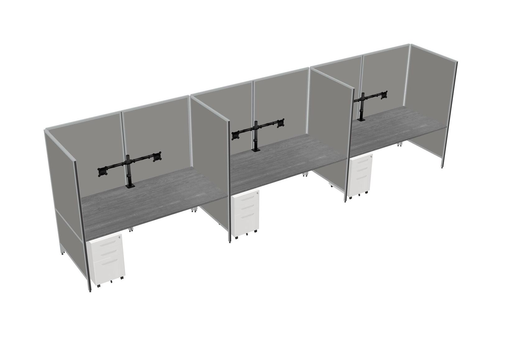 Système De Panneaux Flexibles Gris Pour 3 Tiroirs Mobiles En Métal + Bras Pour écran (double Bras)