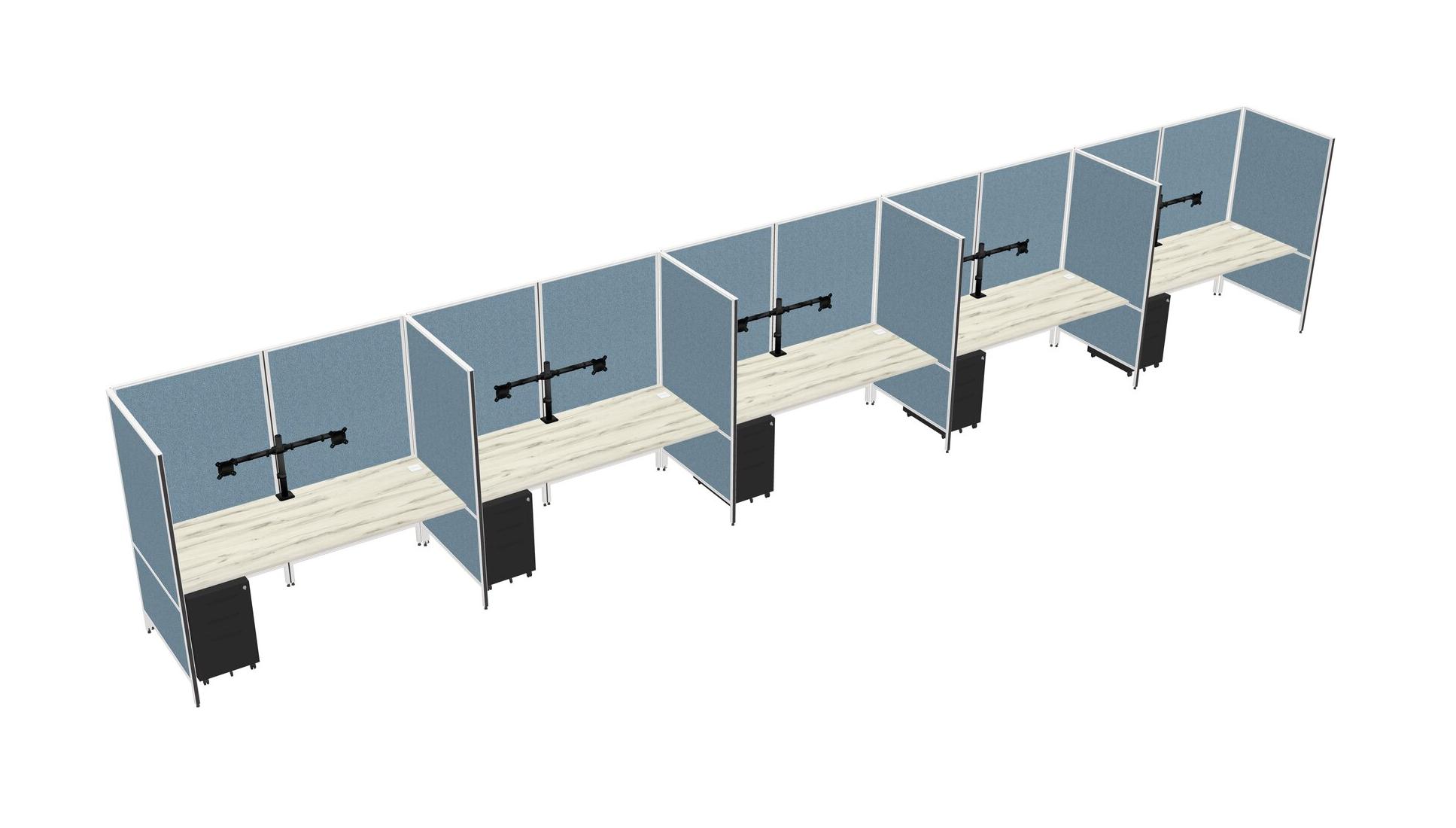 Système De Panneaux Flexibles Heinne Holz Pour 5 Tiroirs Mobiles Métalliques + Bras Pour écran (double Bras)
