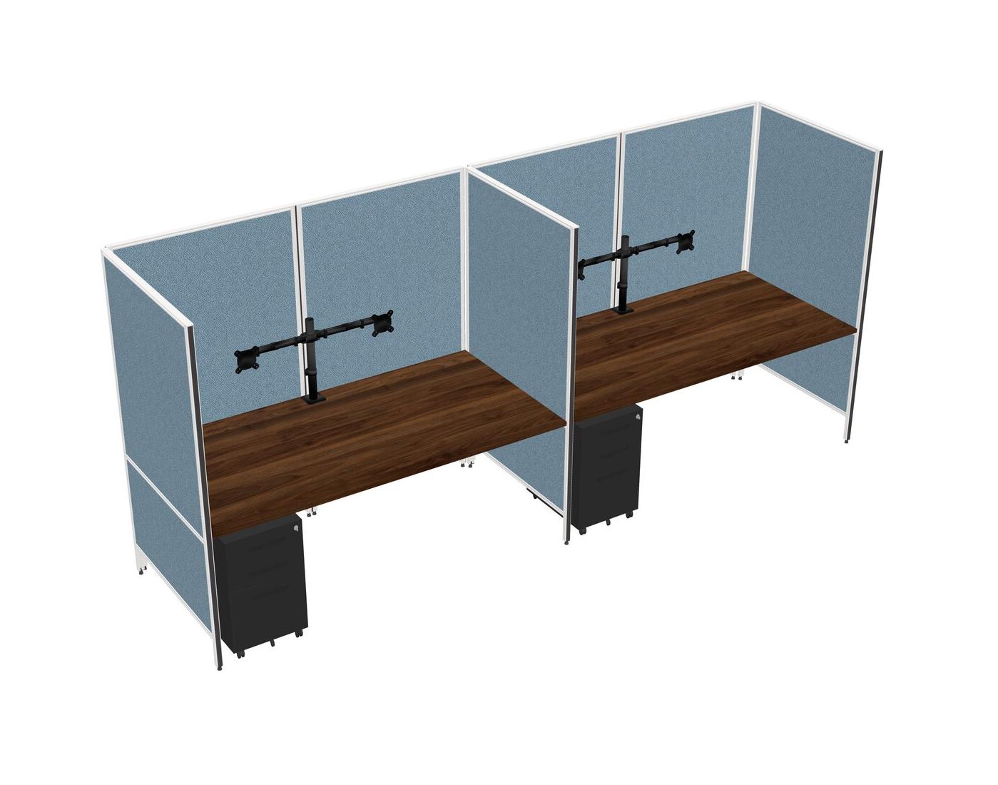 Système De Panneaux Flexibles En Noyer Columbia Pour 2 Tiroirs Mobiles En Métal + Bras Pour écran (double Bras)