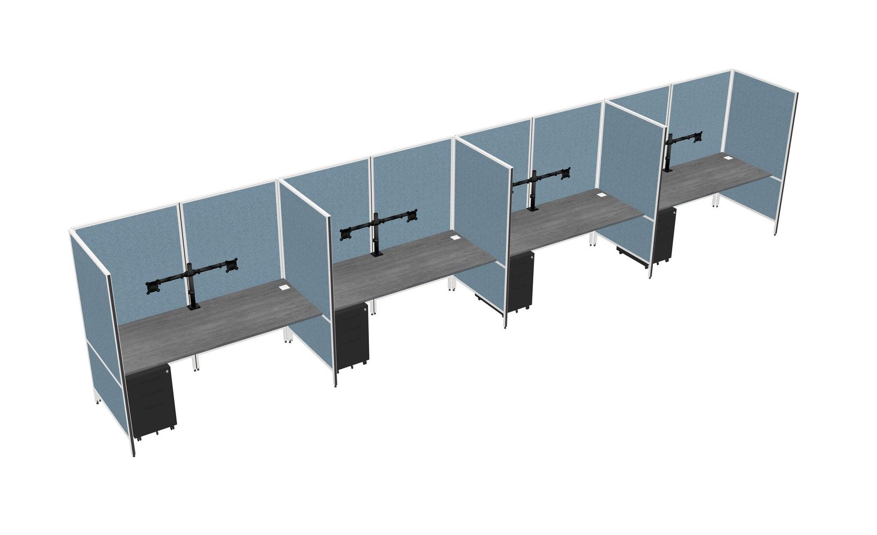 Système De Panneaux Flexibles Gris Pour 4 Tiroirs Mobiles En Métal + Bras Pour écran (double Bras)