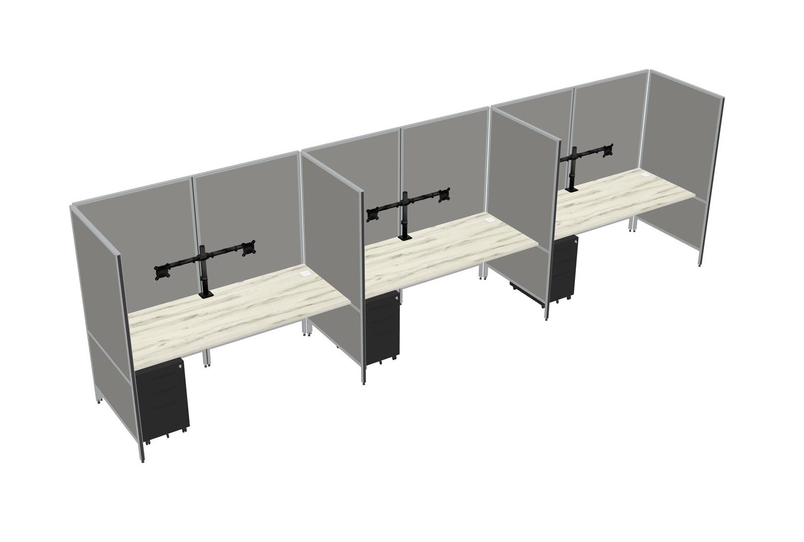 Système De Panneaux Flexibles Heinne Holz Pour 3 Tiroirs Mobiles Métalliques + Bras Pour écran (double Bras)