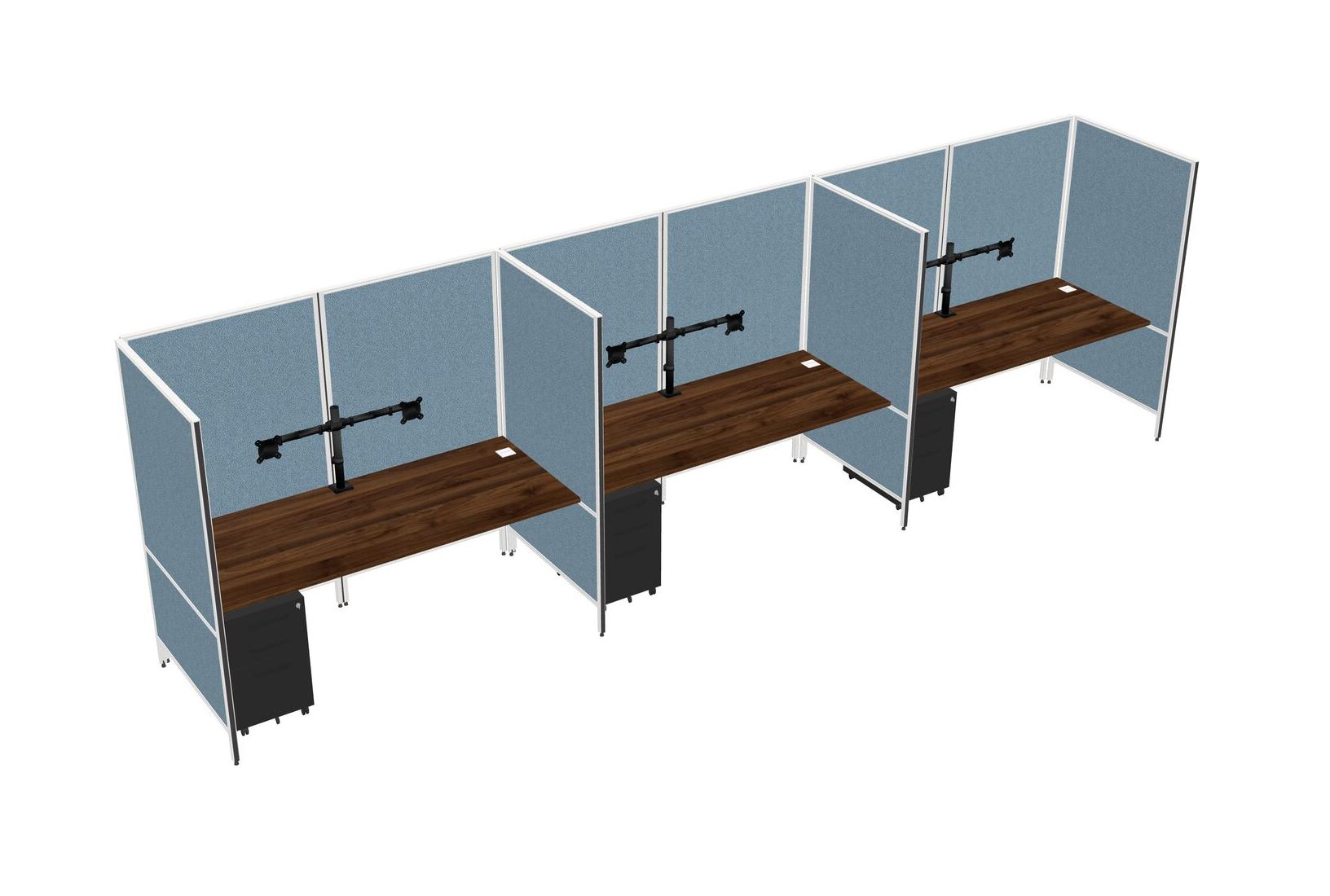 Système De Panneaux Flexibles En Noyer Columbia Pour 3 Tiroirs Mobiles En Métal + Bras Pour écran (double Bras)