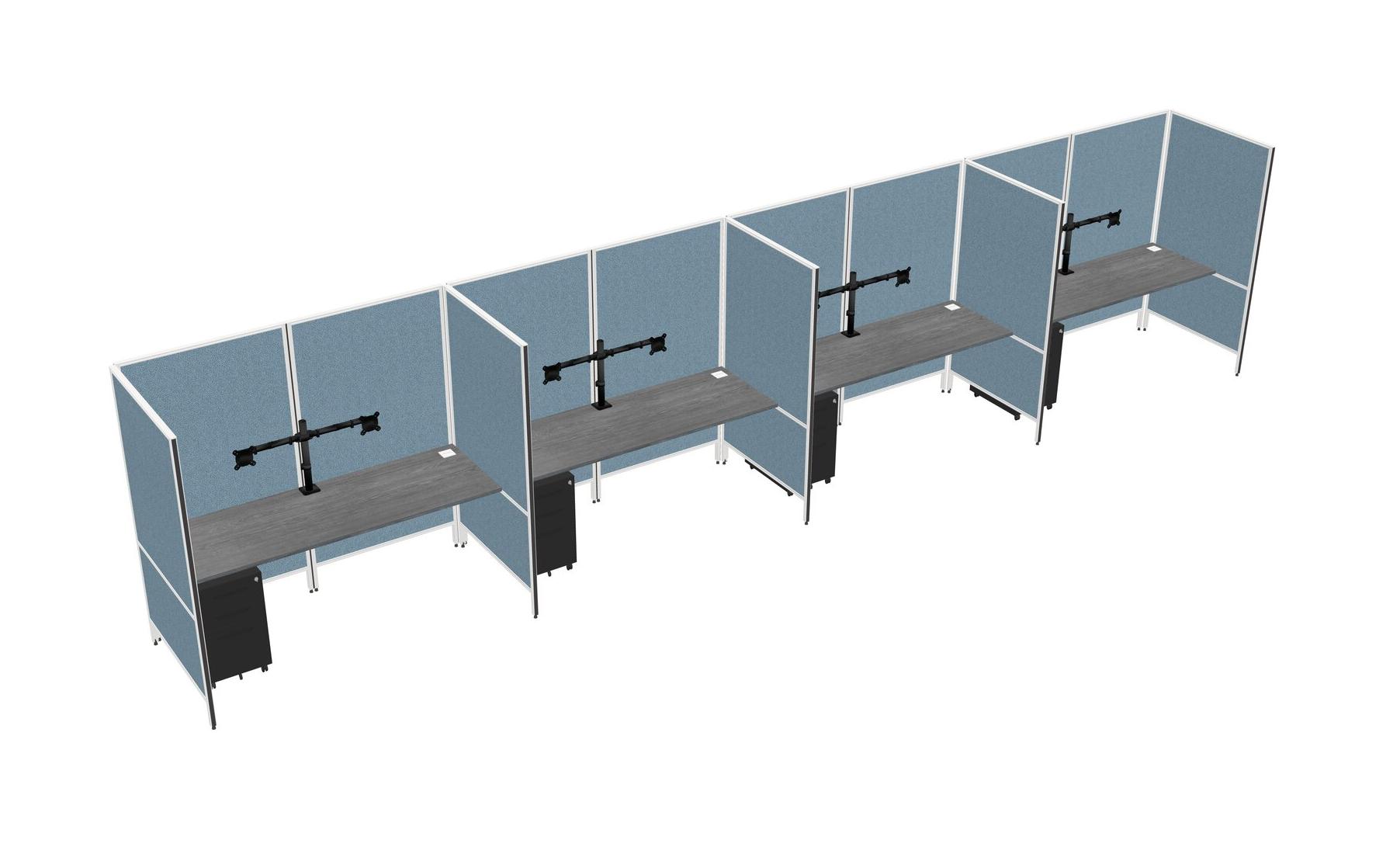 Système De Panneaux Flexibles Gris Pour 4 Tiroirs Mobiles En Métal + Bras Pour écran (double Bras)
