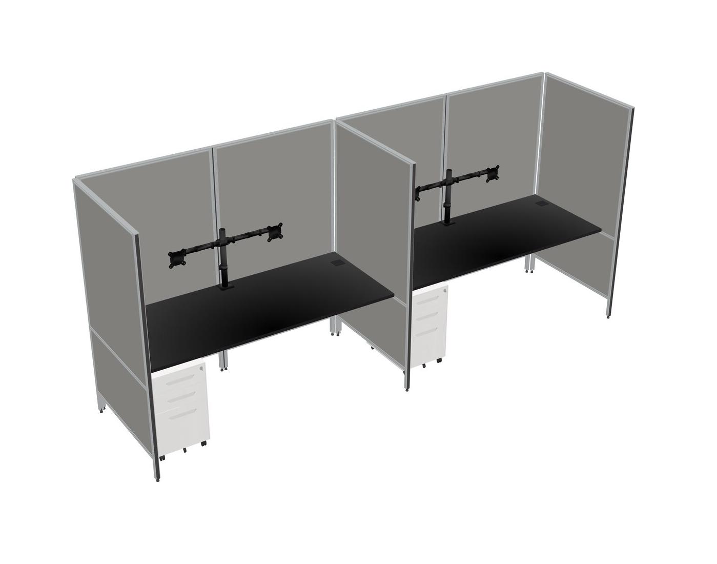 Système De Panneaux Flexibles Noirs Pour 2 Tiroirs Mobiles En Métal + Bras Pour écran (double Bras)