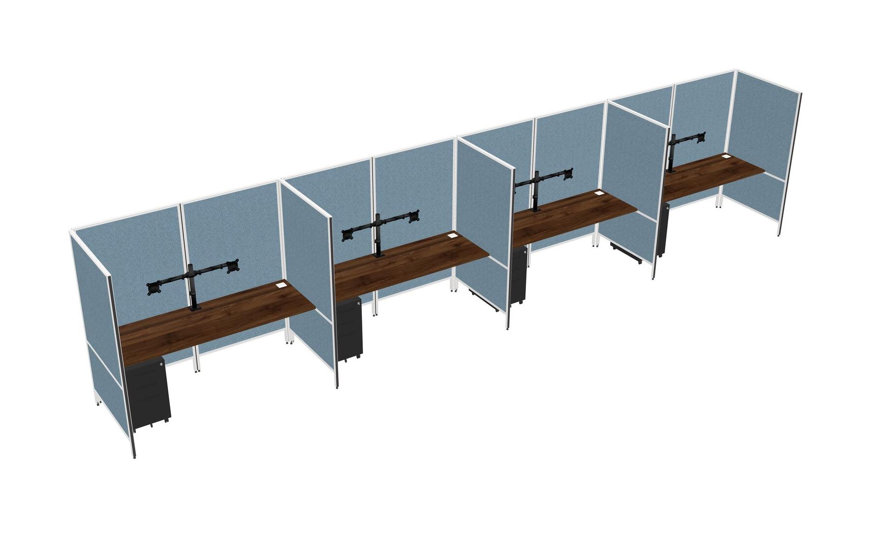 Système De Panneaux Flexibles En Noyer Columbia Pour 4 Tiroirs Mobiles En Métal + Bras Pour écran (double Bras)