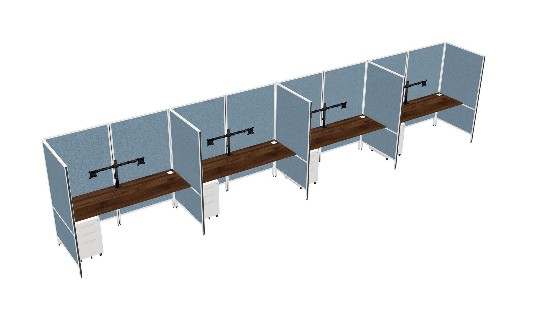Système De Panneaux Flexibles En Noyer Columbia Pour 4 Tiroirs Mobiles En Métal + Bras Pour écran (double Bras)