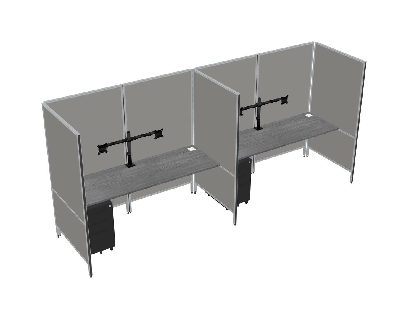 Système De Panneaux Flexibles Gris Pour 2 Tiroirs Mobiles En Métal + Bras Pour écran (double Bras)