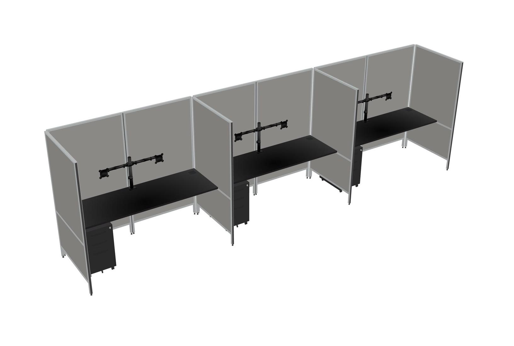 Système De Panneaux Flexibles Noirs Pour 3 Tiroirs Mobiles En Métal + Bras Pour écran (double Bras)