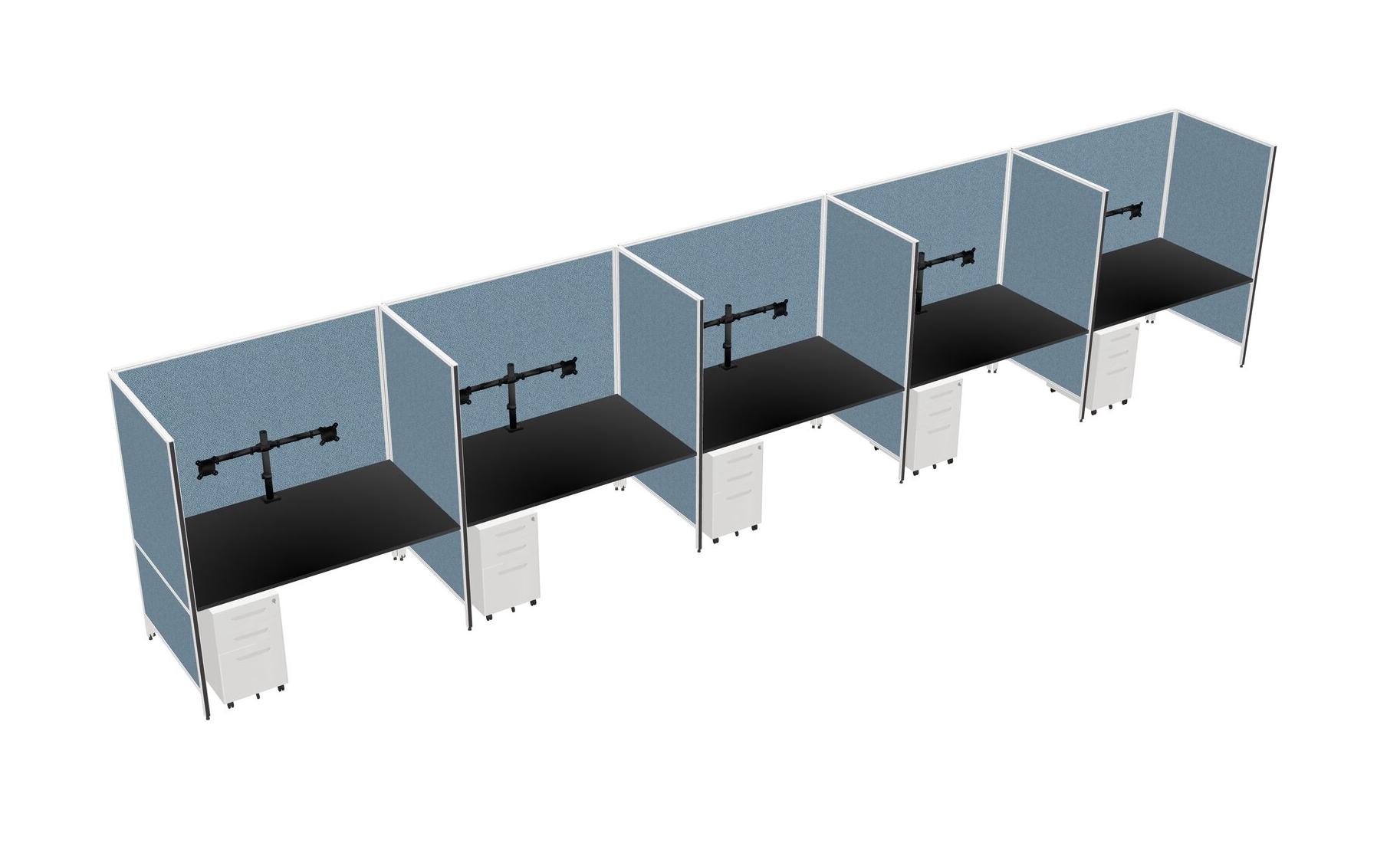 Système De Panneaux Flexibles Noirs Pour 5 Tiroirs Mobiles En Métal + Bras Pour écran (double Bras)