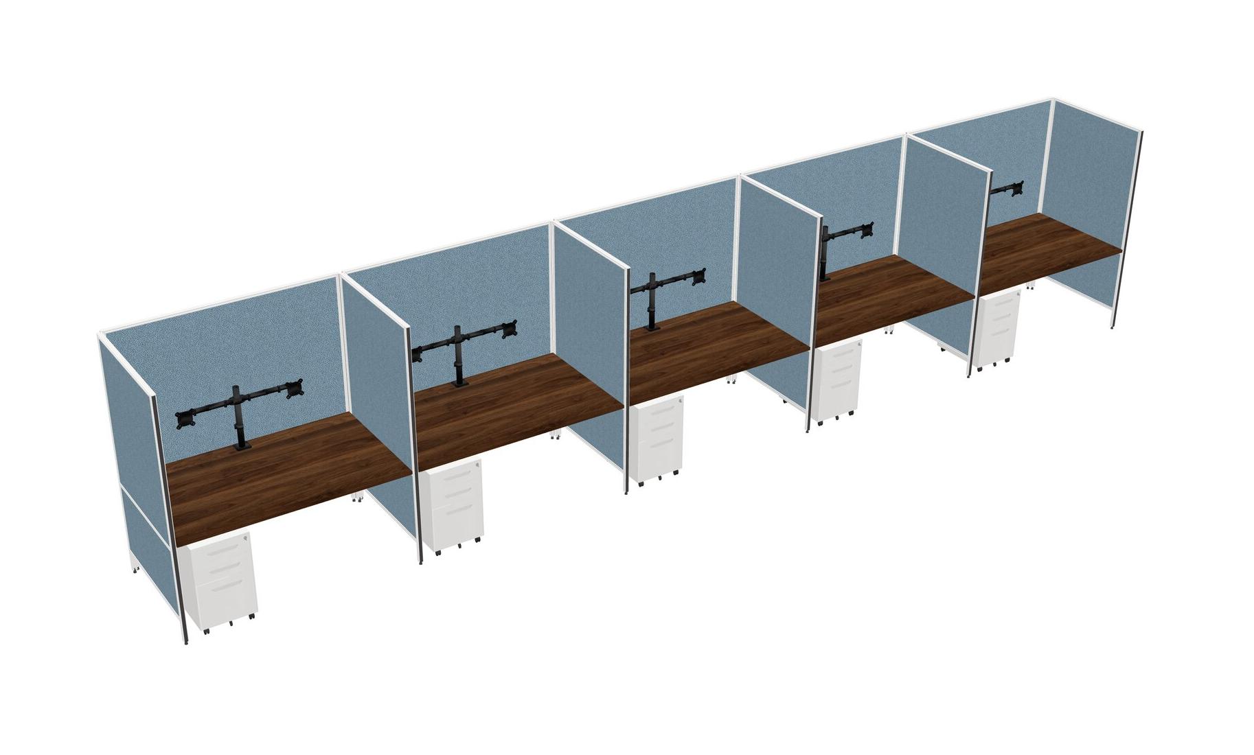 Système De Panneaux Flexibles En Noyer Columbia Pour 5 Tiroirs Mobiles En Métal + Bras Pour écran (double Bras)