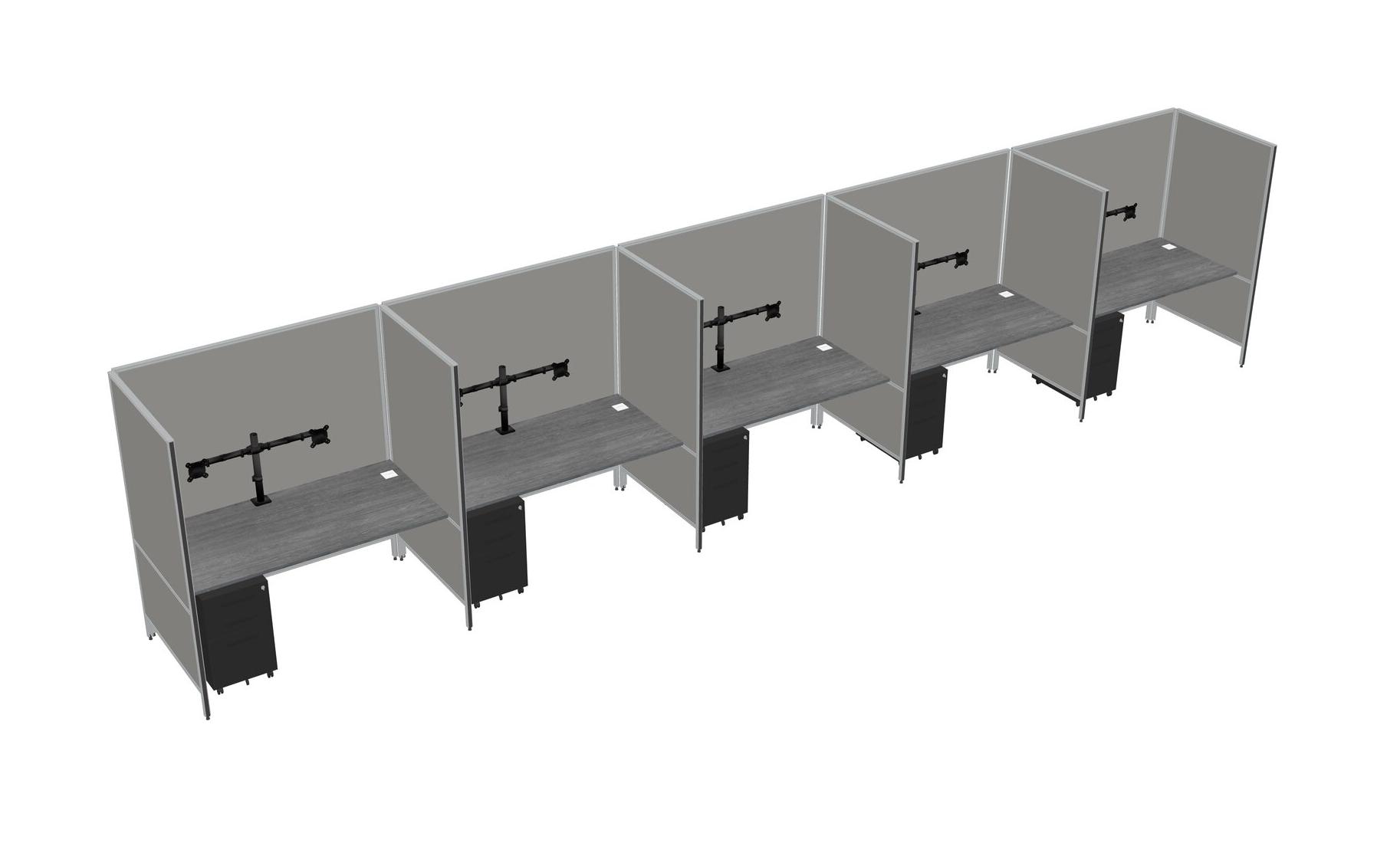 Système De Panneaux Flexibles Gris Pour 5 Tiroirs Mobiles Métalliques + Bras Pour écran (double Bras)