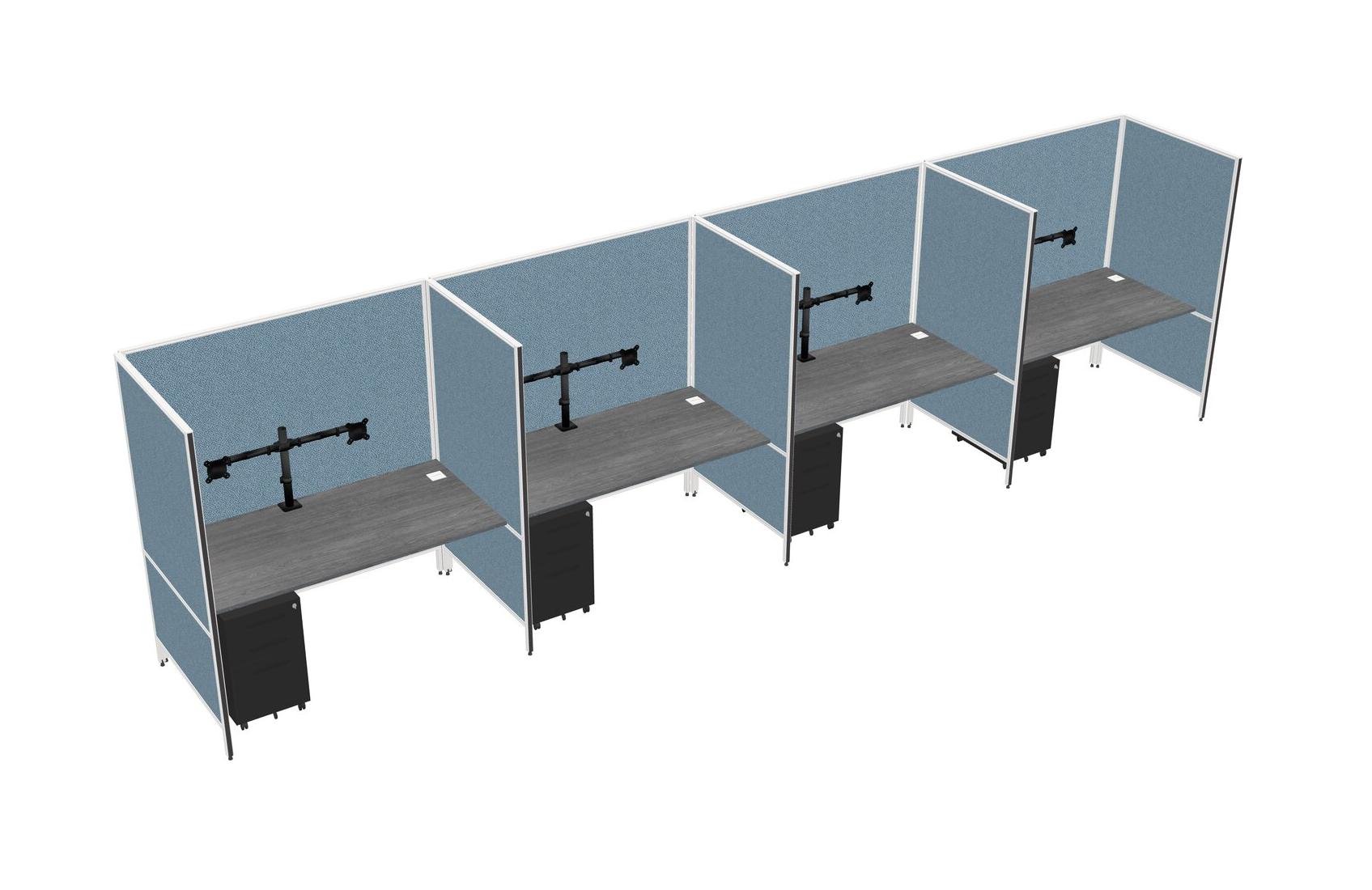 Système De Panneaux Flexibles Gris Pour 4 Tiroirs Mobiles En Métal + Bras Pour écran (double Bras)