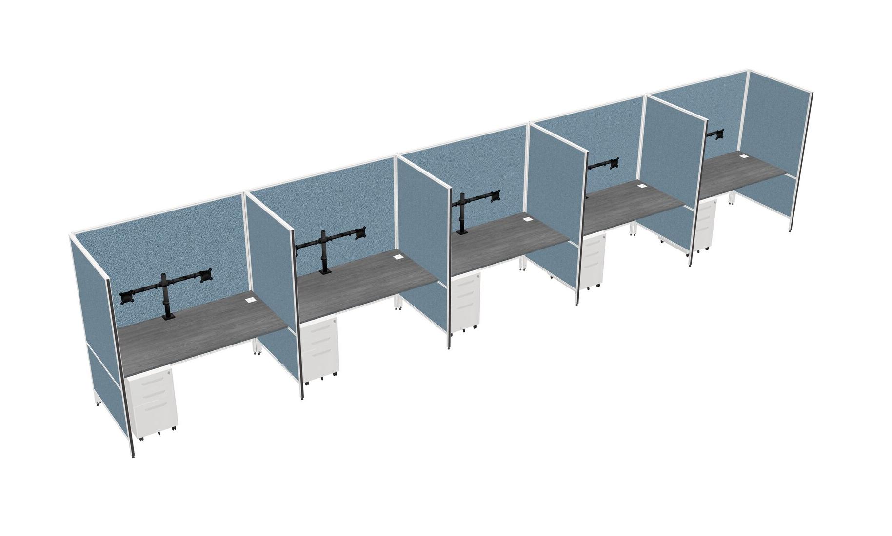Système De Panneaux Flexibles Gris Pour 5 Tiroirs Mobiles Métalliques + Bras Pour écran (double Bras)