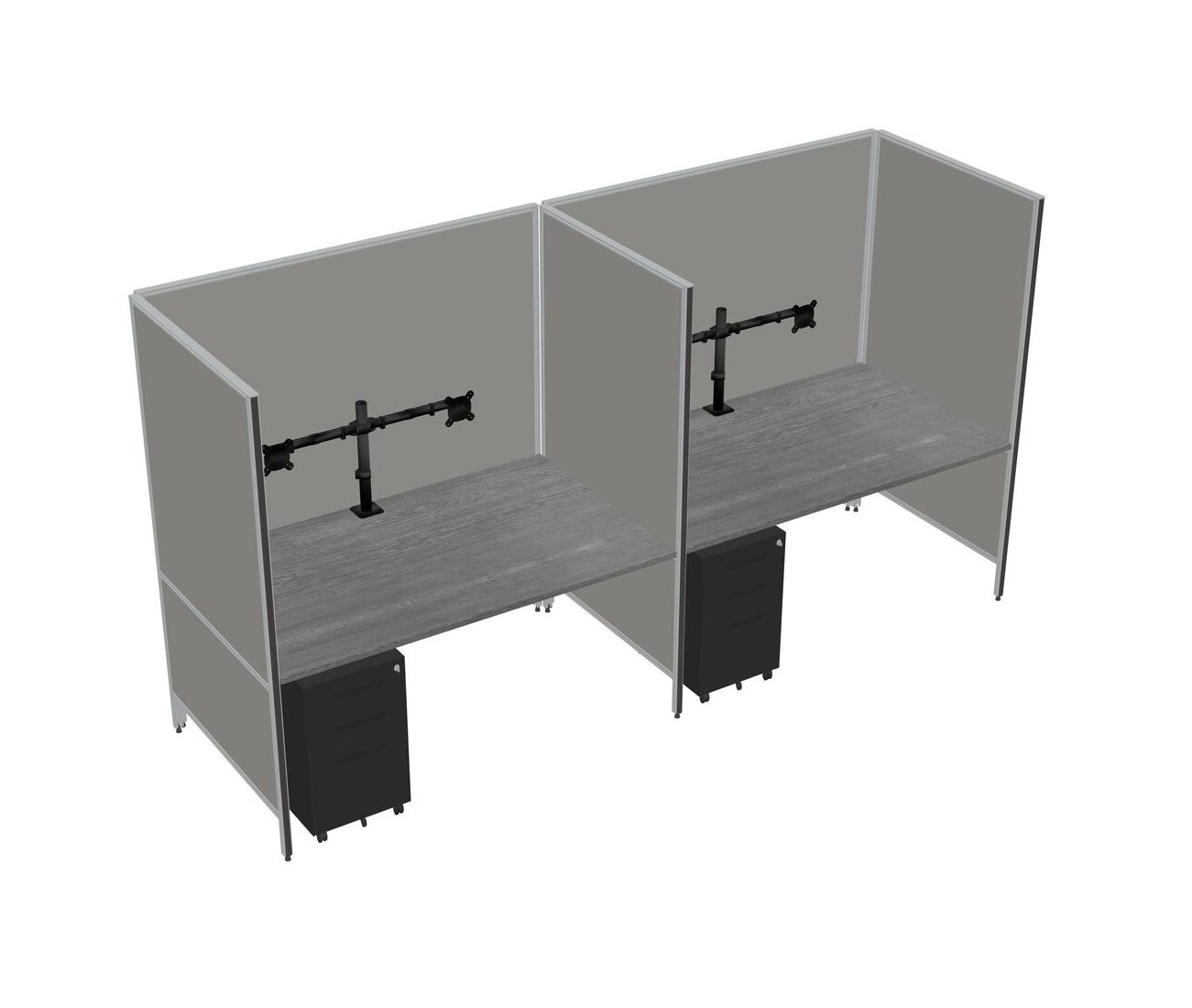 Système De Panneaux Flexibles Gris Pour 2 Tiroirs Mobiles En Métal + Bras Pour écran (double Bras)